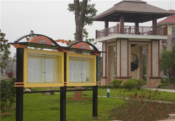 木材的宣傳欄多用在園林中,這種宣傳欄不太實用,一般只能張貼戶外寫真畫面。由于木質(zhì)的宣傳欄不能把內(nèi)容藏于玻璃內(nèi)部,只能裸露在外面,所以內(nèi)容得不到保護。